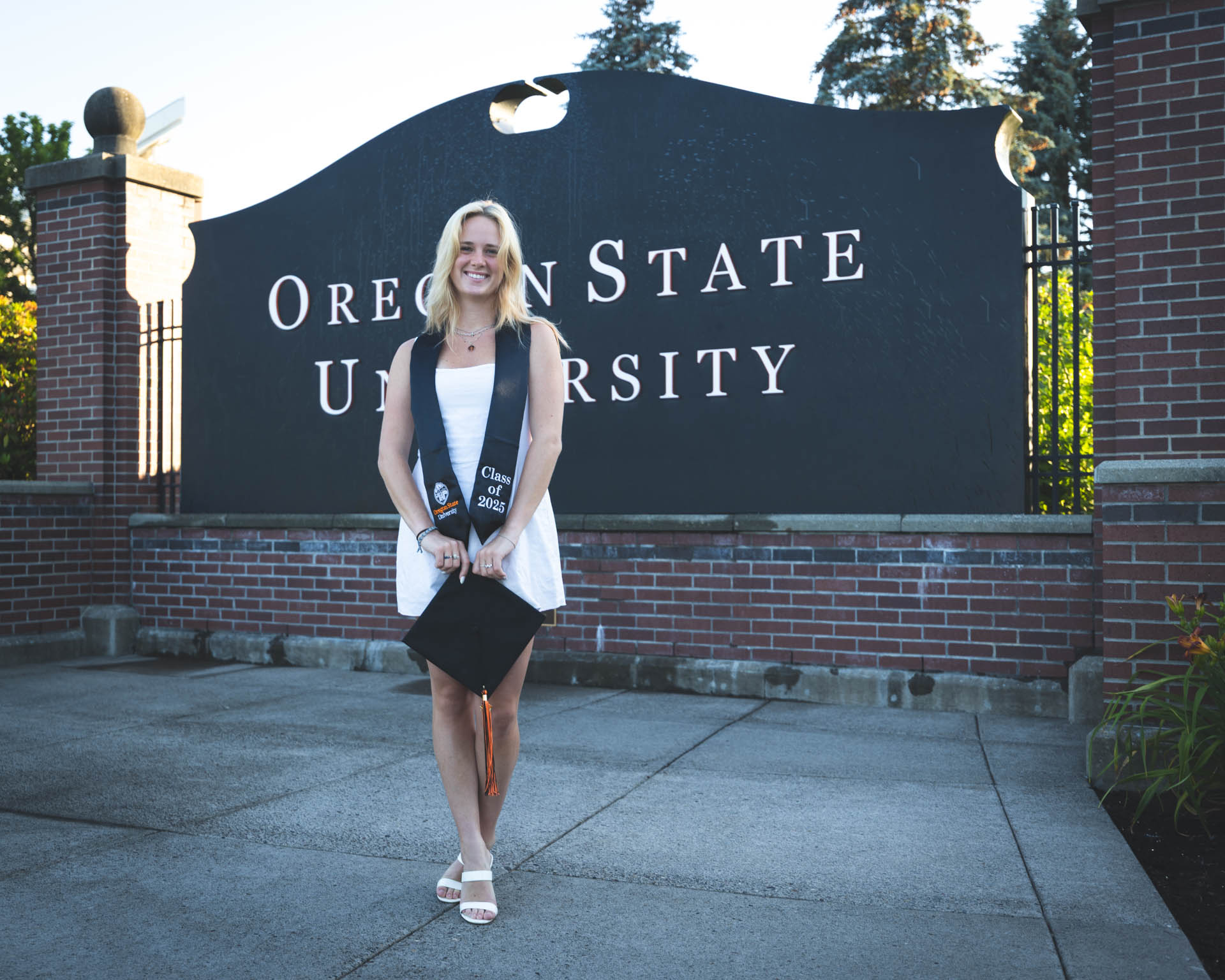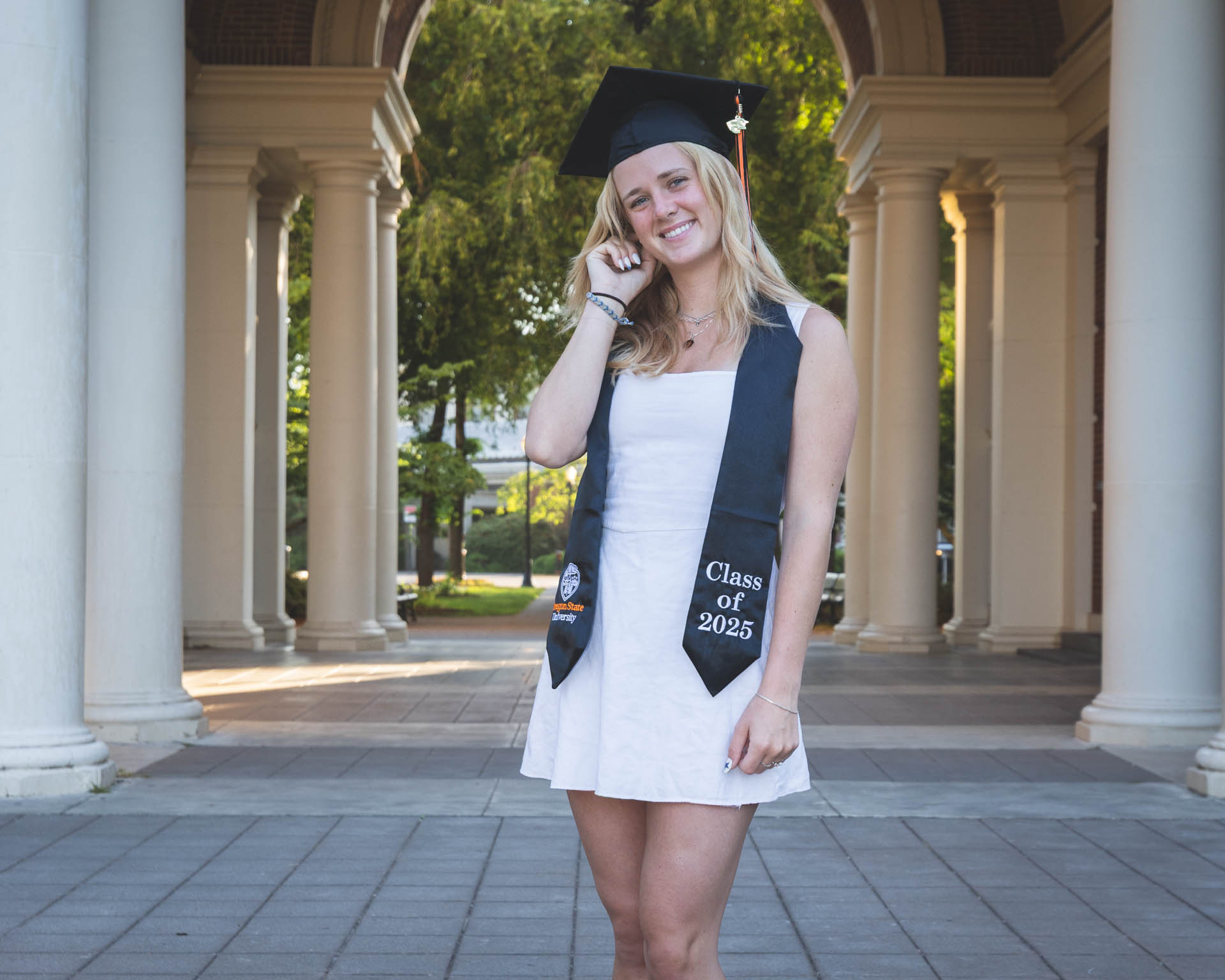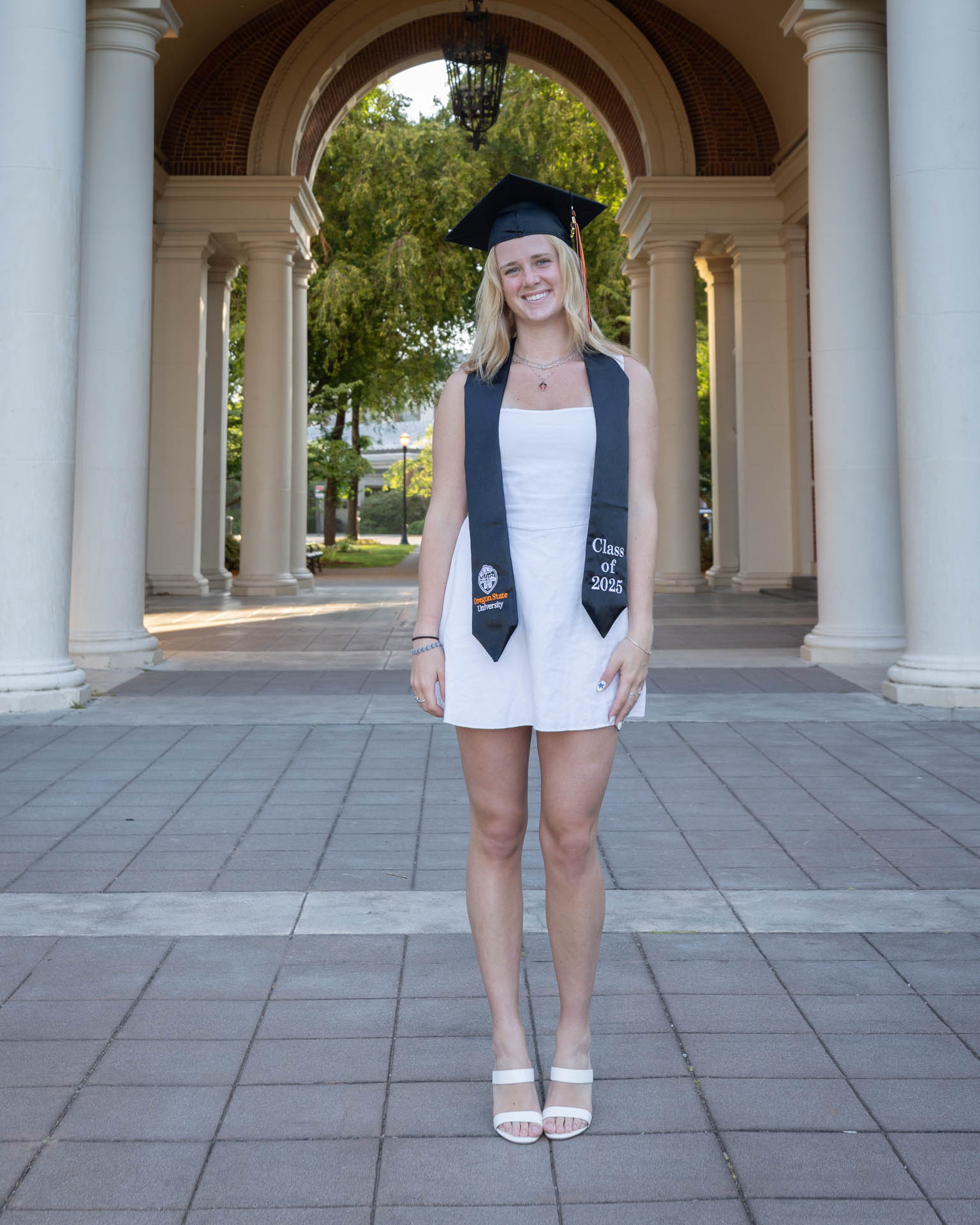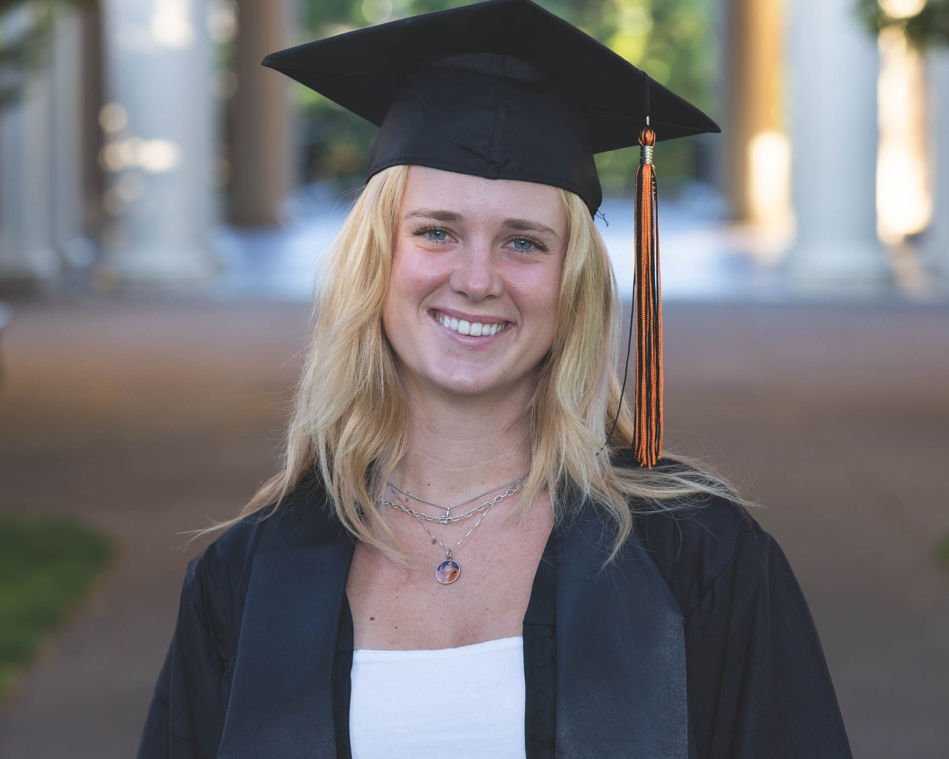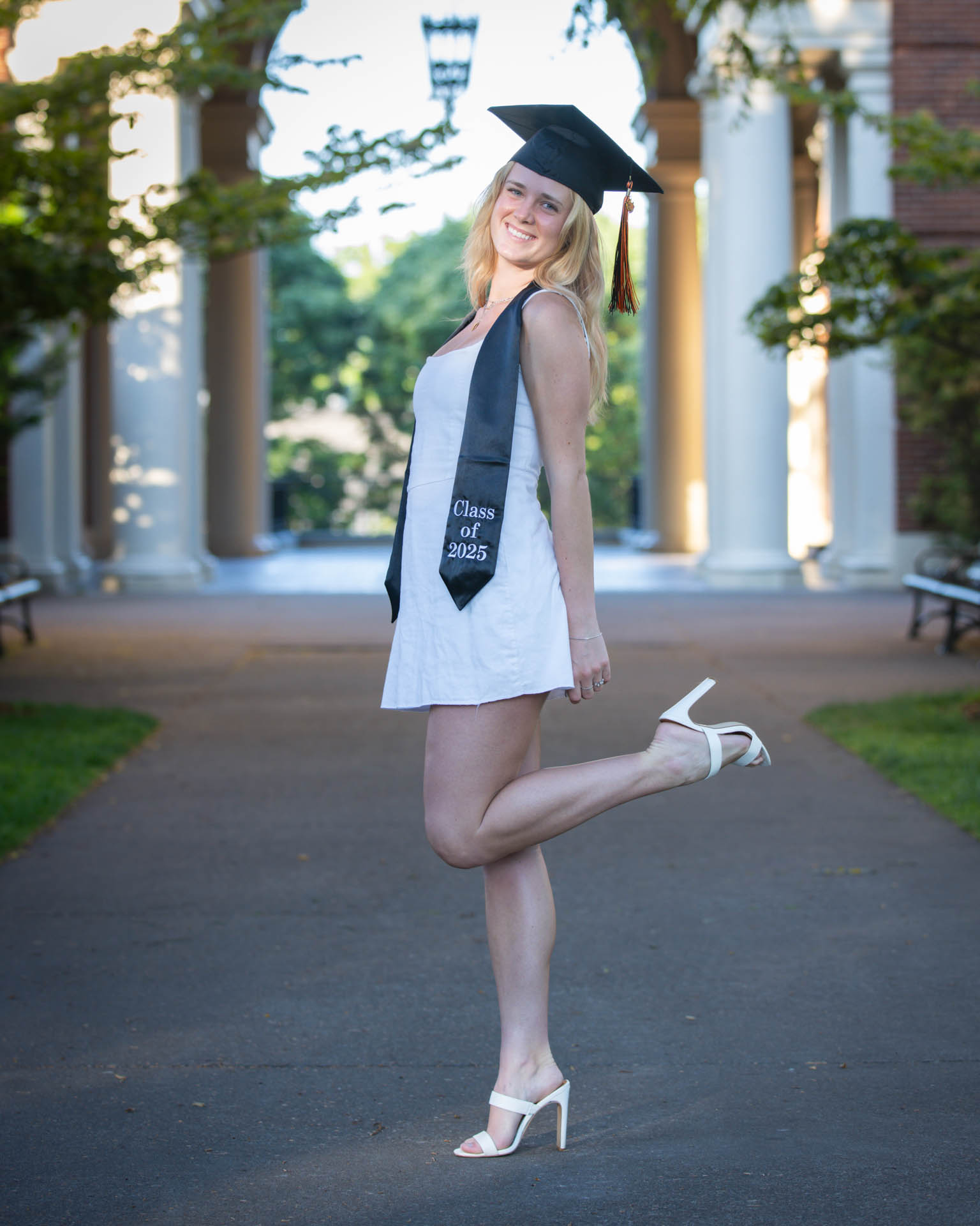 In this graduation portrait shoot with Kendall, we had the light on our side! The golden hour lighting was beautiful and we got some iconic locations around campus checked off. This whole session turned out great.